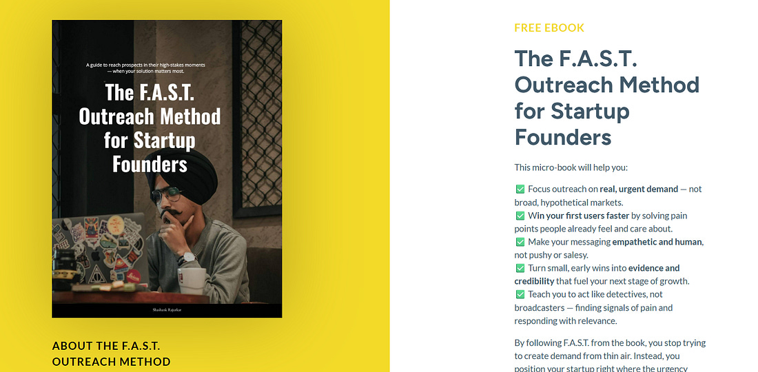 How You Can Try This This Week (Mini-Playbook)Below is a short roadmap you can apply right now — even if you don’t have paying users yet. Download the Full F.A.S.T. eBookIf you want the full, structured version — with templates, workflows, best practices, and scaling paths — you can download the micro eBook here: 👉 [Download the F.A.S.T. Outreach Method PDF] Use it as: