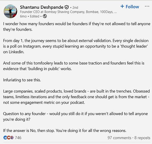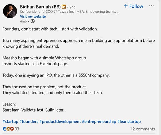 Most Validating Founders Fail Because They Adopt Post-PMF Behavior Too EarlyIf you try to copy: